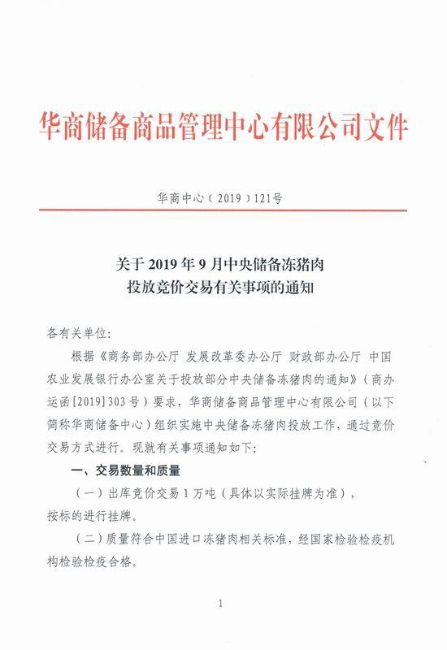 为了缓和紧张的猪肉供应情况,9月17日,华商储备商品管理中心发布消息称,国家拟投放1万吨储备冻猪肉,这一消息意味着将有1万吨猪肉进入市场,继而摆上我们的餐桌。